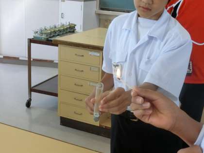 業では、水素を発生させる実験を行い、マッチの火で発生したか否か