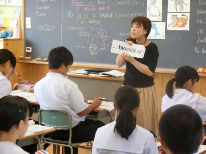 英語科の授業では、多くの生徒が実際に発声したり会話をしたりと