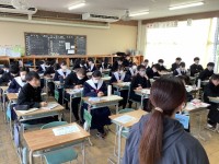 1年生の数学の授業の様子です。資料の活用という単元で、日常生活に置き換えてグループで考え資料を作成しています。できた資料はとても丁寧で見やすいです。数学の理解を深めるために一生懸命に頑張っています!