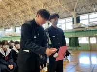 6時間目に校内書き初め大会が行われました。1年生は「強い信念」、2年生は「輝く生命」、3年生は「新たな挑戦」を書きました。静かに、集中して書くことができました。