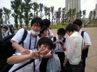 写真2枚目:お台場でガンダムを見てきた後の生徒たち。