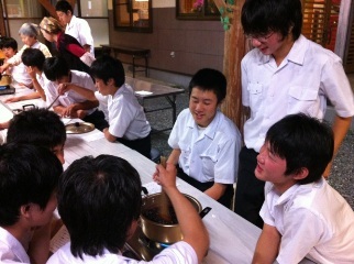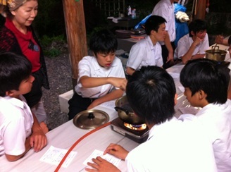 民宿での活動は、ブルーベリージャムづくりです。民宿の方が優しく教えてくださいます。のんびり会話をしながら作る、楽しいひとときです(写真1枚目・2枚目)。
