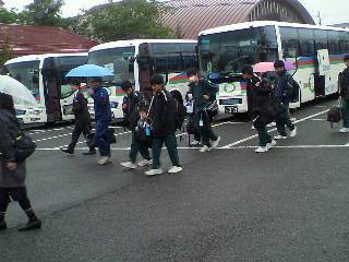 修学旅行最終日、小雨です。長袖の重ね着をしても「寒い」と言っている生徒たちもいます。