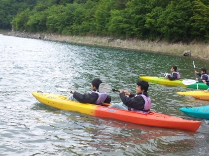残念ながらパラグライダーは雨天のため中止となりました。そのため、本栖湖でのカヌー体験に変更となりました(写真1枚目・2枚目)。