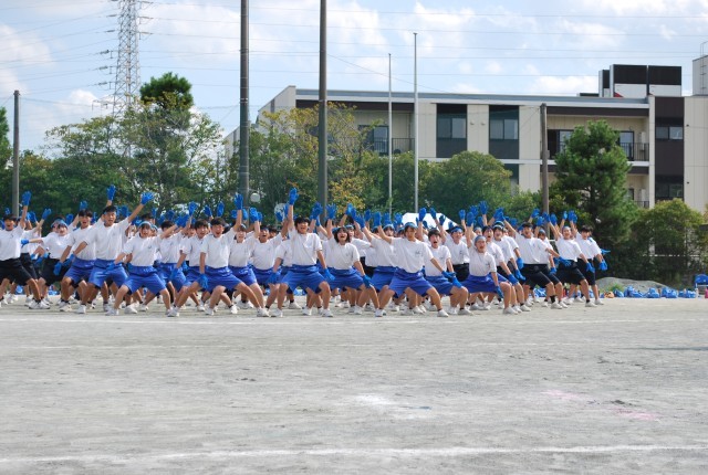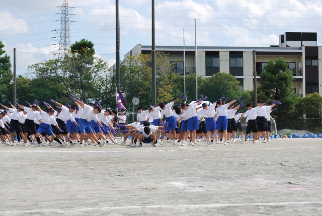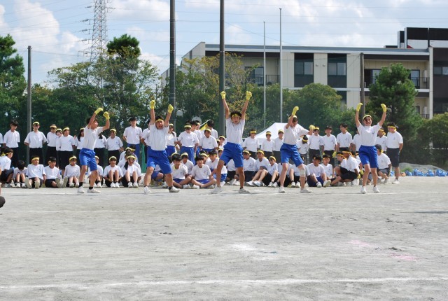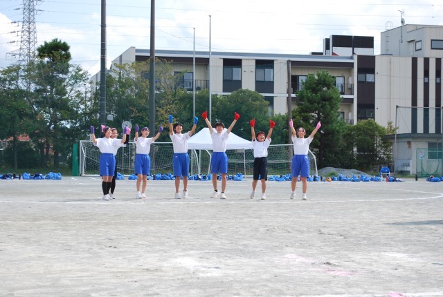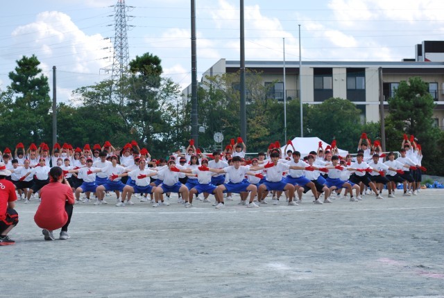 午後の最初は「応援合戦」です。団長や応援リーダーを中心に練習をしてきた演技を発表しました。声、動き、どれをとっても素晴らしい演技でした。