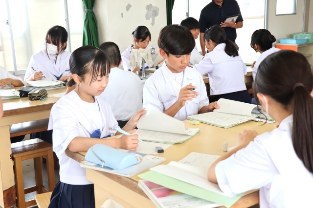 生徒のみなさんも毎日勉強をしています。同じように授業を行う先生方も、日々勉強を重ねています。先生方の勉強は、自身が行う授業を他の先生方に参観してもらい、生徒のみなさんが進んで学習に取り組めるような声のかけ方や考えさせ方などについて、そのよさを共有し合ったり改善方法を考えたりします。