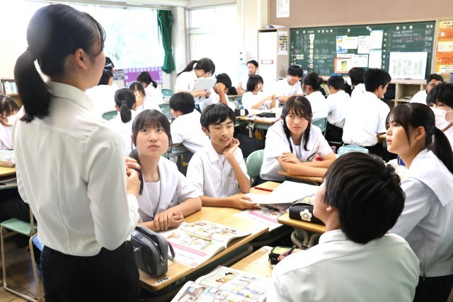 実習生の先生はこの授業のために何時間もかけて準備を進め、練習して臨んでいます。生徒のみなさんもそういった先生の頑張りを感じてか、一生懸命に考え、発言する姿が見られました。実習生の先生、生徒のみなさんの生き生きとした表情が見られ、互いの頑張りを感じあって取り組んだ素敵な道徳の1時間でした。