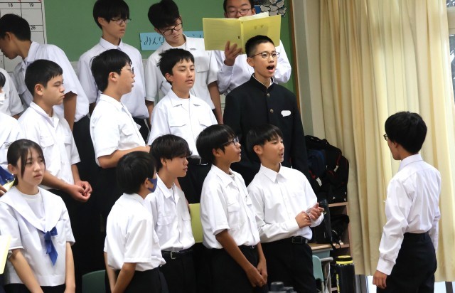 ほぼ毎日、帰りの時間に合唱練習を行っています。それぞれの学級がそれぞれの進み具合に合わせて練習方法を工夫しながら取り組んでいます。本日の合唱練習では、他学年の学級と合唱交流をしたり、学年外の先生を呼んで聞いてもらったりしている学級がありました。そうかと思えば、とにかくパートにこだわり、パート練習主体で進めている学級もありました。方法は違っても、どの学級も徐々に取り組みの姿勢がまとまってきているように思います。残り10日、これからそれぞれの学級がどんな成長を見せてくれるのか、本当に楽しみです。