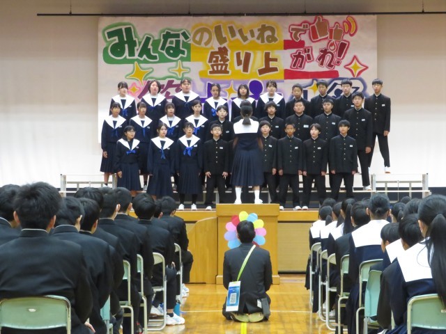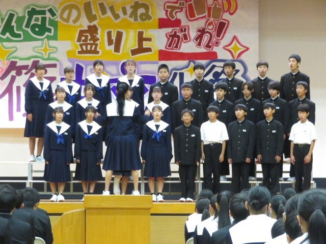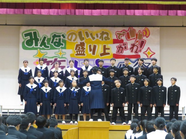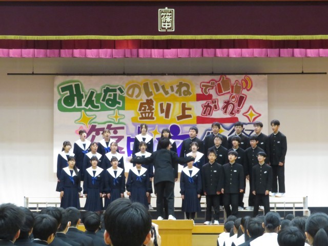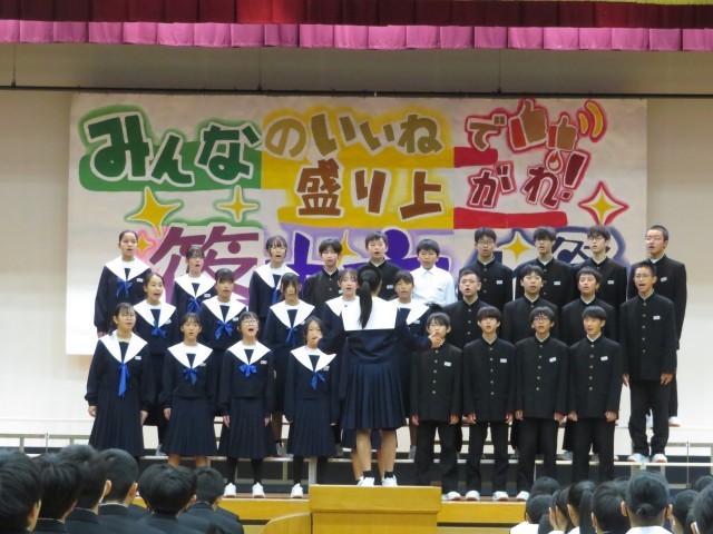 文化祭2日目は「合唱コンクール」です。これまで学級で取り組んできた合唱を披露する場です。