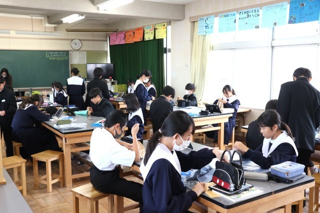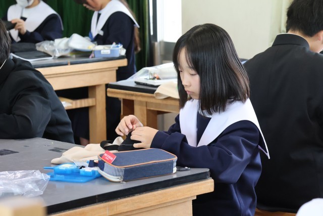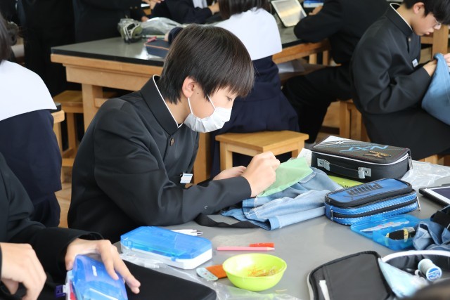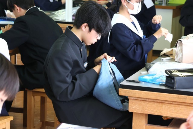 1年生家庭科ではトートバッグの製作に取り組んでいます。裁縫については小学校のころから学習しているとはいえ、まだ不慣れな生徒が多いです。でもだからこそひと針ひと針、慎重に縫い進めていました。こうしてできた作品が一人一人にとって大切なものになることを願っています。もう少しで完成です。頑張りましょう!