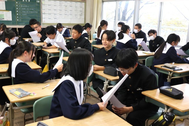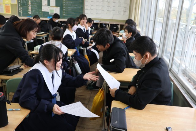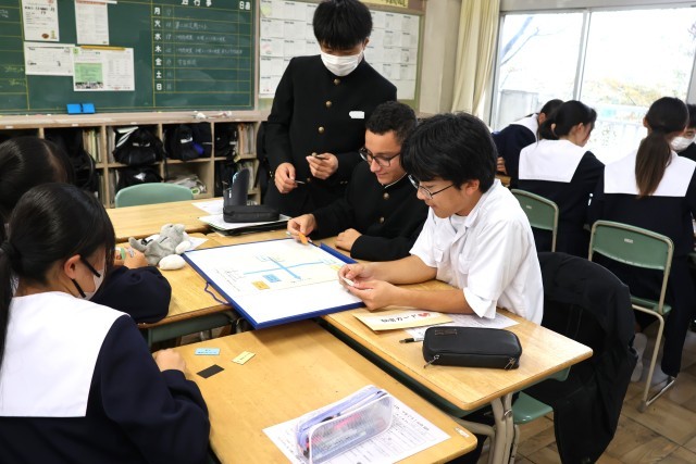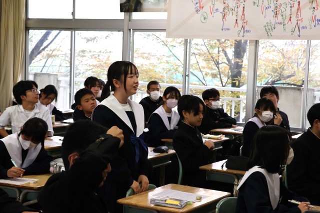 本日の午後、2年生で養護教諭による学活の授業が行われました。「受け止め、つなごう!心のSOS」と題して、いろいろな困りごとなどがあったときにそれを誰につなぐのか、どうつなぐのかなどをグループで考えました。