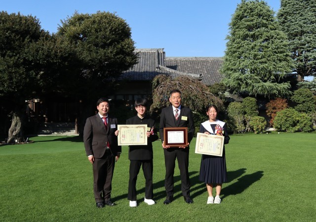 本日、東京の明治記念館において「市村アイデア賞 表彰式」が行われました。本校からは2名の3年生生徒と校長先生、担当教師が出席しました。立派な会場で多くの来賓の方々の前で、3年生生徒2名は市村アイデア奨励賞、篠目中学校には優秀団体賞が授与されました。全国規模のコンテストで2名の生徒、さらには学校が表彰されるというのは本当にすごいことです。篠中生みんなで喜び合いたいですね。「おめでとうございます!」こんなところも「いいね!!篠中!」ですね。