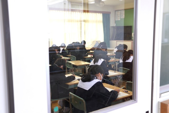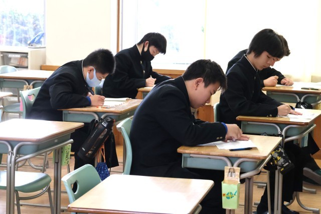 どの学級でもテストが配られると、教室内がピンと張りつめたような空気になります。どの生徒もこのテストに向けて頑張ってきたからこその、この空気感ではないかなと思います。