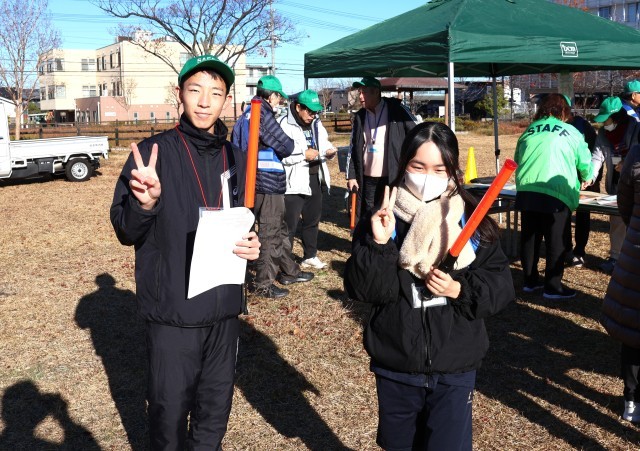 早朝9時の集合でしたが、風もなく、あたたかな光が差す絶好のウォーキング日和でした。ボランティアで参加してくれたみなさんは、住吉緑地での打ち合わせの後、自分の担当場所で交通整理をしてくれました。地域の方々と言葉を交わしながら、笑顔で活動してくれたみなさん、ありがとうございました。