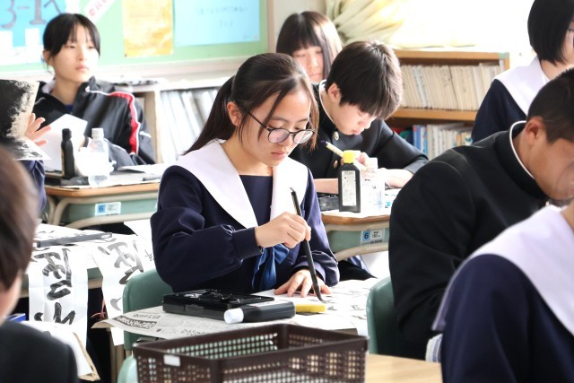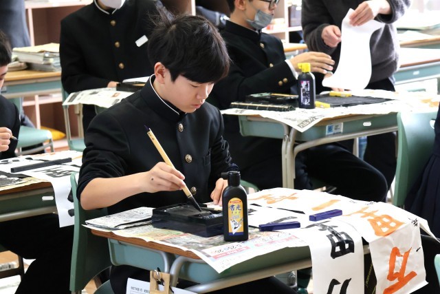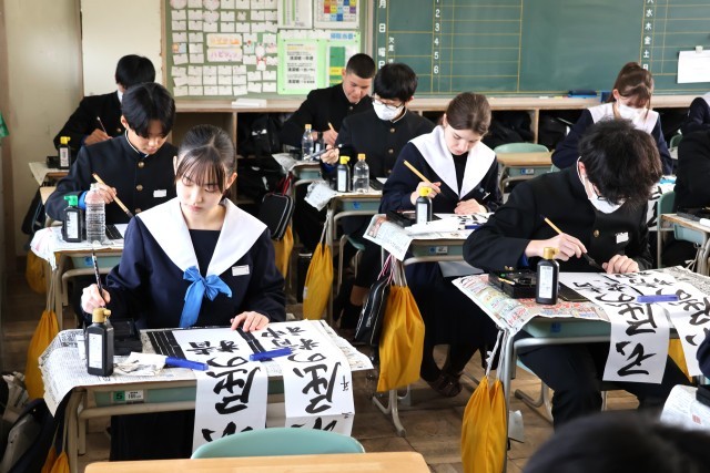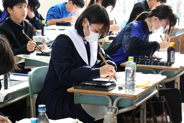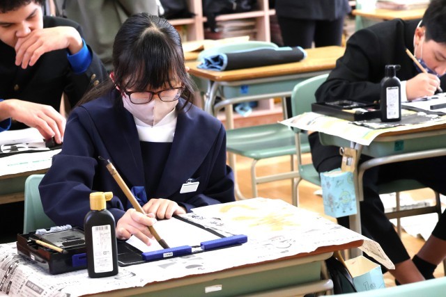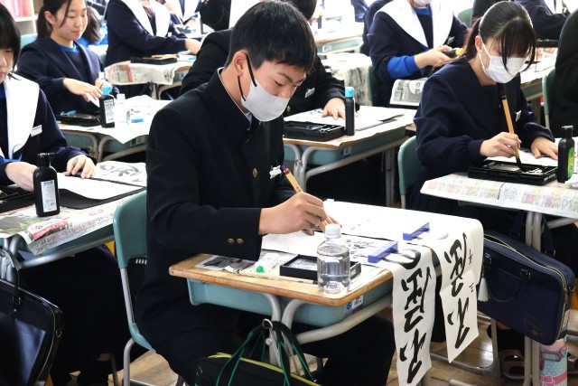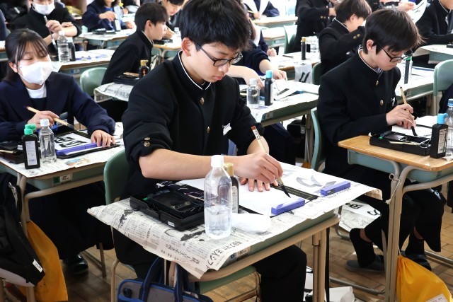 始業式の後は、「書き初め会」です。
