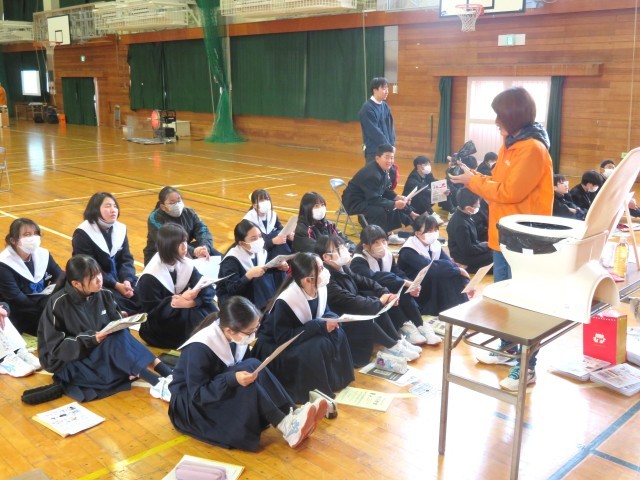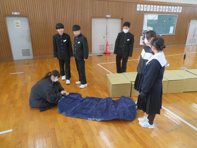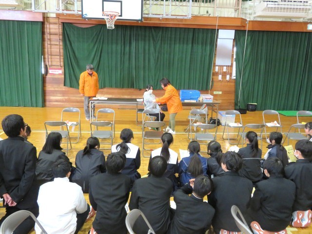 本日の5・6時間目に、社会福祉協議会のみなさんにお力添えをいただき、「中学生防災隊防災教室」を実施しました。