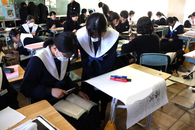 グループに分かれて卒業期に向けての学級レクリエーションなどの計画を進めていました。