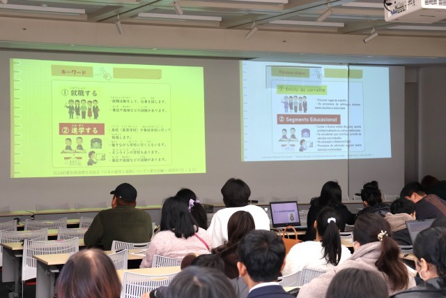 1月31日(土)に、へきしんギャラクシープラザで「外国にルーツをもつ子どもと保護者のための進路ガイダンス」が開催されました。昨年度までは篠目中学校独自で行っていた行事ですが、それが市内全体へと広がりました。本校からも運営や講師として2名の先生方が参加されました。さらには、市内中学校を卒業し、進学した先輩たちとの交流のために、篠目中学校の卒業生も10名ほど協力してくれていました。