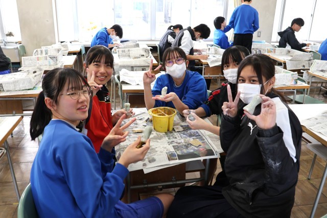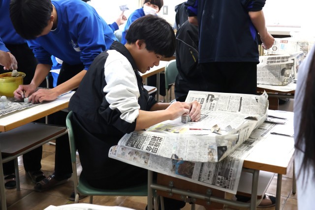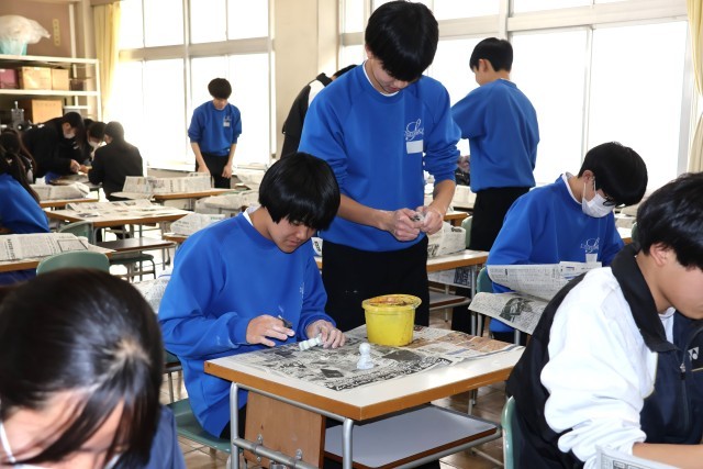 本日の午後、特別支援学級は学年に分かれての作業でした。3年生のみなさんは悩みながらも楽しげに作文に取り組んでいました。また、3年生のある学級は美術の授業でオリジナル印章づくりに取り組んでいました。自分のイメージした通りの印章の持ち手になるように、ひたすらに石を磨き続けたり、アドバイスをもらうために級友と話したりしていました。「集中して」「楽しんで」取り組む姿が素敵でした。