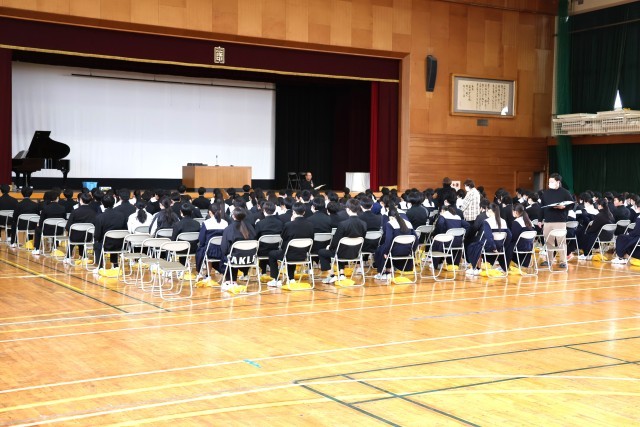 本日の午後、3年生では卒業式に向けての学年練習が始まり、自分たちの卒業式に向けてた準備の第一歩を踏み出しました。3年生のみなさんは入場したときから、自分たちで雰囲気づくりをし、真剣な中にもあたたかさのある練習を行っていました。テストや受検もあり、練習も多くはありません。ただ、自分たちで創り上げたいという気持ちをもった3年生のみなさんです。きっとすてきな卒業式を創り上げてくれると信じています。