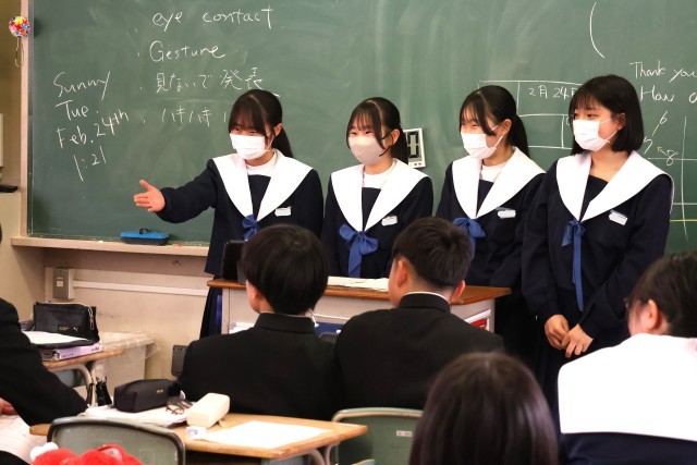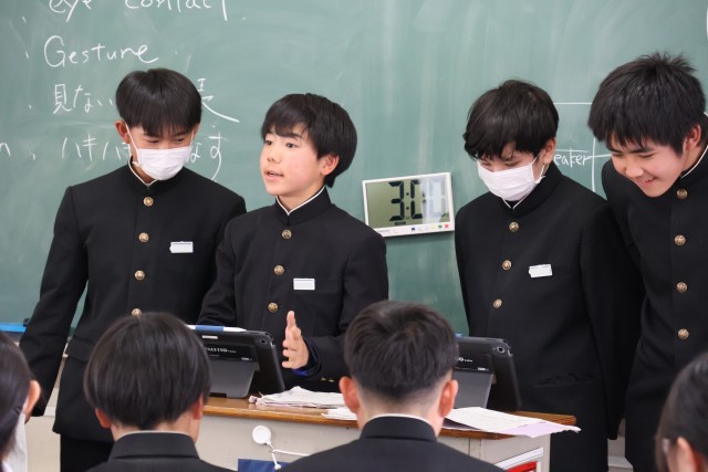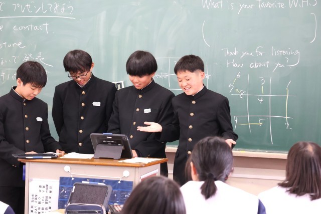 本日の午後、2年生で英語科の授業公開がりました。「周りの人に自分たちの行きたい世界遺産を教えてあげよう」のテーマのもと、世界遺産やそれがある国、周辺施設のことなどを写真と英語で伝え合いました。どのグループも、とても堂々と世界遺産について伝えている姿がとても印象的でした。
