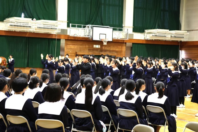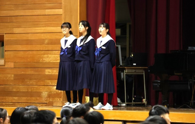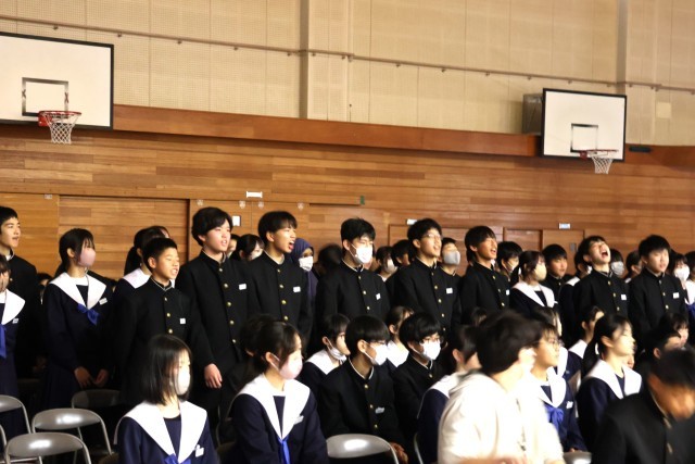 「3年生を送る会」3年生への感謝の気持ちだけでなく、解団式の中では3年生から1・2年生への感謝の言葉もありました。会の終わりには、3年生の代表者からのお礼の言葉がありました。途中では応援団からのエール・校歌熱唱もありました。時に熱く、時にあたたかく、「HOT」で「ほっと」な篠中の素敵な姿が数多く見られました。やっぱり「いいね!篠中」、そんな思いが高まりました。最後に全校で合唱した「明日になれば」、3年生のみなさんが頑張って繋ぎ、高めてきてくれた合唱曲です。歌う回を重ねるごとに、着実に歌声が高まってきています。うれしいですね!