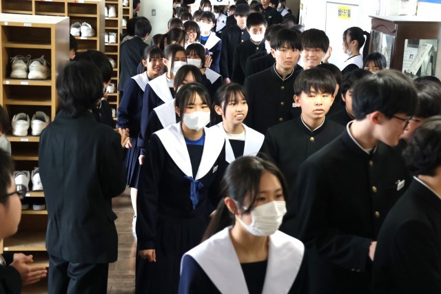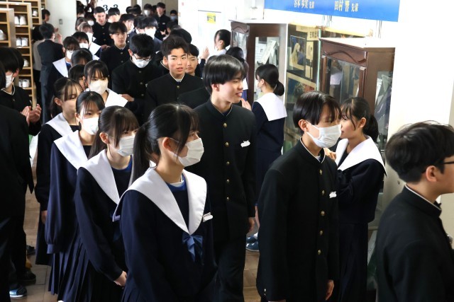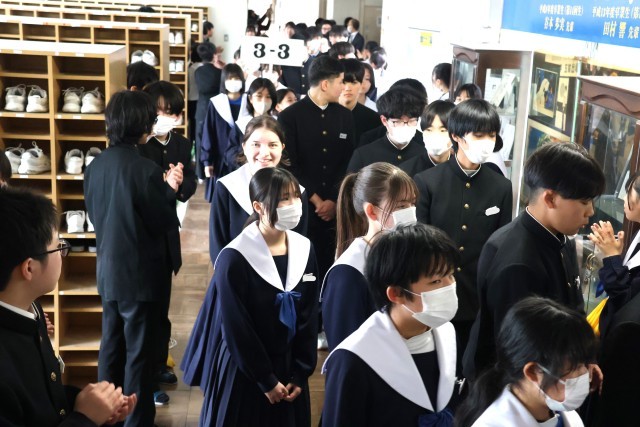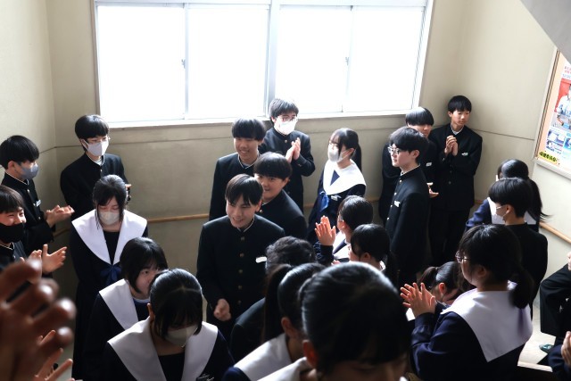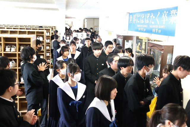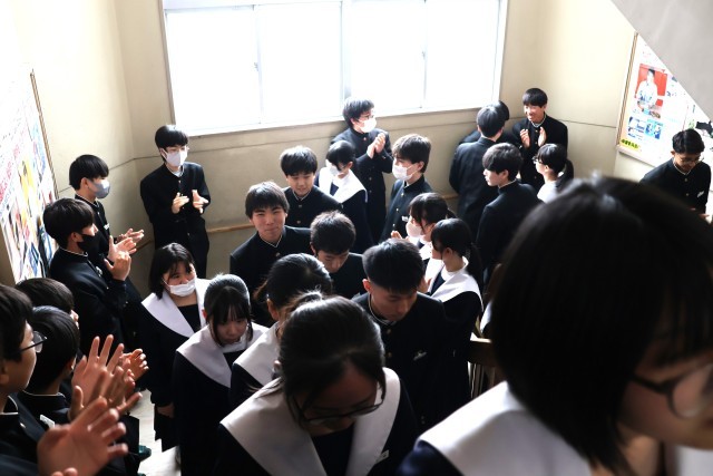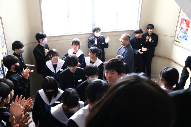 3年生を送る会のあとは、1・2年生が作る花道を3年生が通っていく「壮行会」でした。