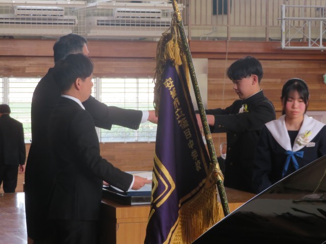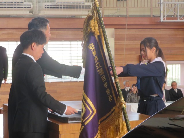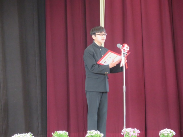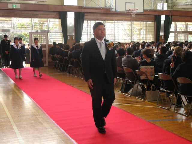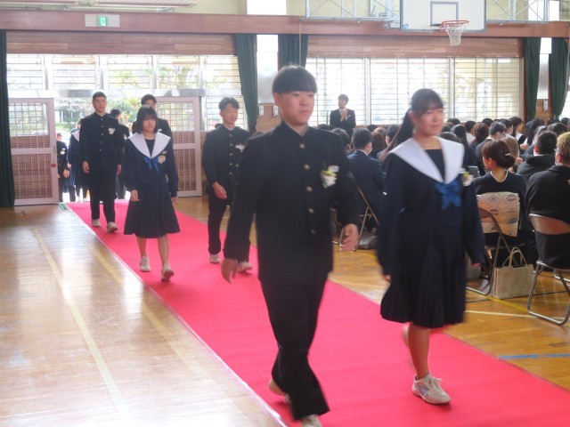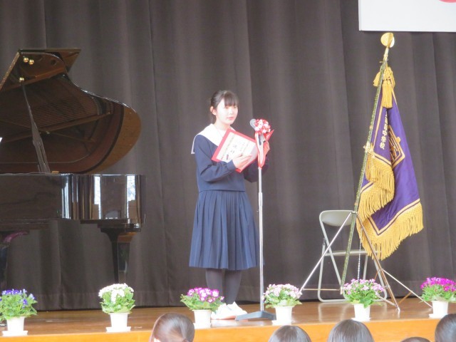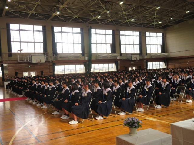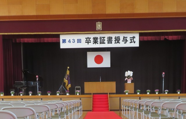 本日、多くの保護者のみなさまや地域の方々にご参列いただき、篠目中学校第43回目の卒業証書授与式を行いました。天候にも恵まれていたため、気温もあたたかでしたが、それ以上に、入退場の拍手、卒業生を見つめる眼差しなどに見られた、会場内のみなさんの作る雰囲気のあたたかさを感じた式でした。