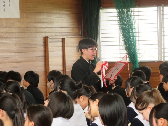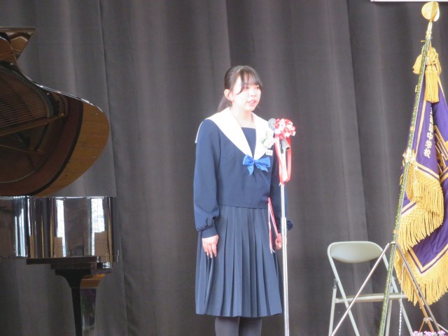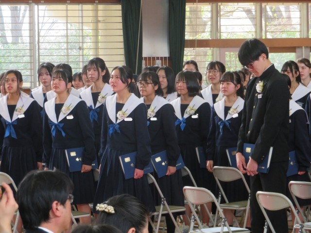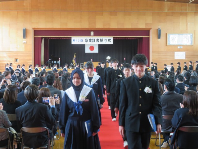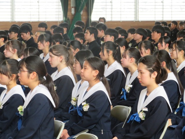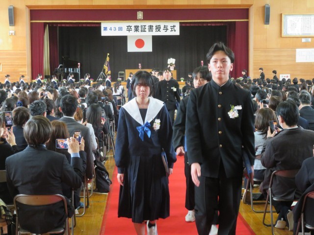第43回卒業証書授与式の続きです。送辞や答辞、そして卒業生全員で歌った「群青」。一言一言に思いが込めらえたすばらしいものでした。2年生の思いは3年生に伝わり、3年生の思いは2年生に引き継がれていく、強く感じました。