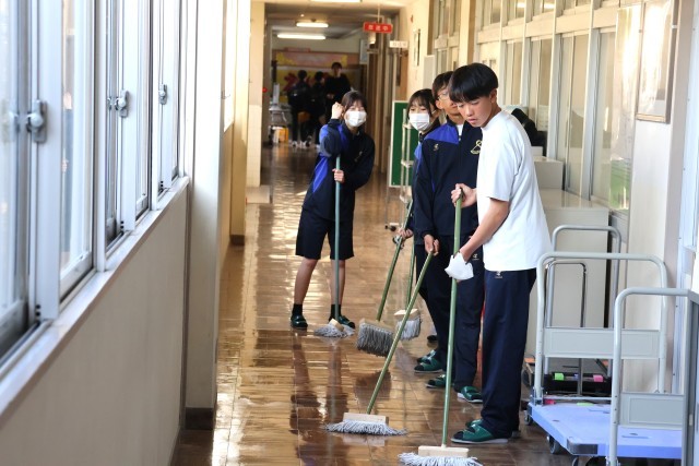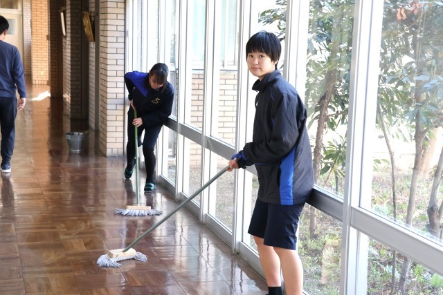 昨日19日の下校後に、美化委員さんを中心に教室や1階廊下のワックスがけが行われました。他の生徒が帰った後の教室や廊下を再度掃き掃除し、ワックスをかけました。1年間お世話になった教室、校舎をきれいにし、次の学年へと引き継ぎます。
