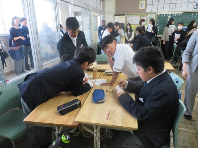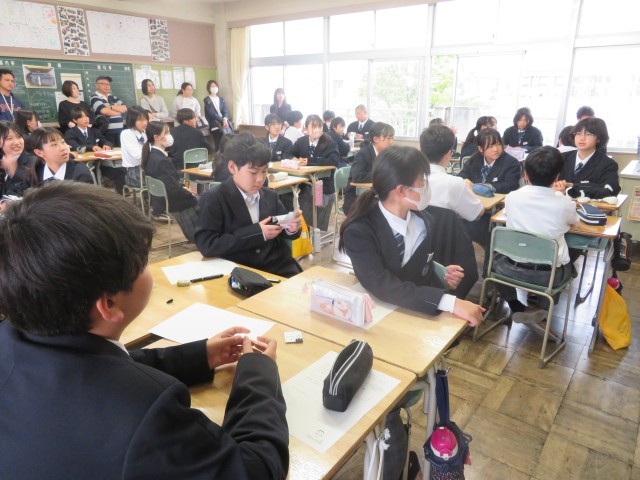 入学して初めての授業参観で緊張している人もいたかもしれませんが、グループで協力し意見を出し合いながら作業することが出来ていました。
